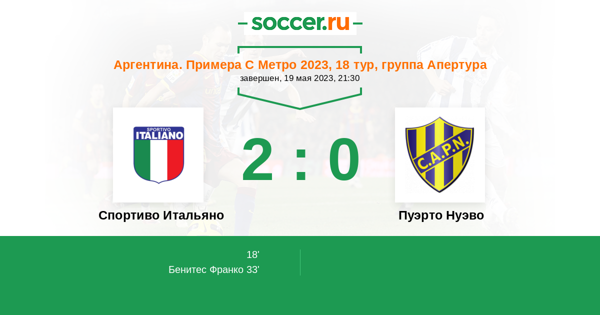 Протокол матча Спортиво Итальяно против Пуэрто Нуэво