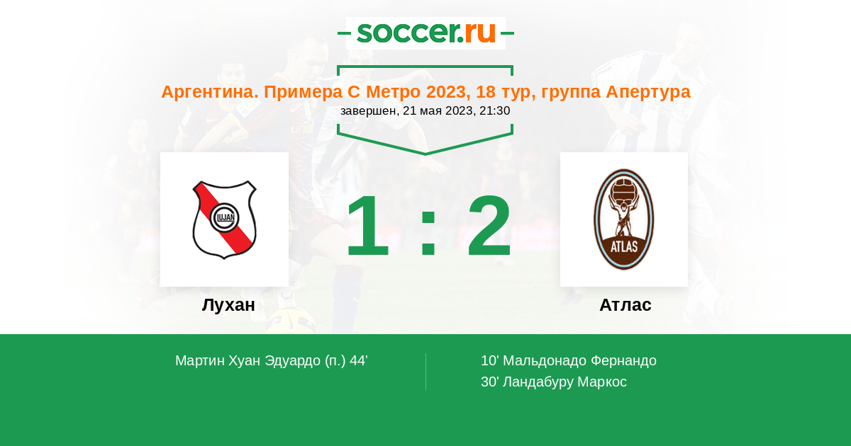Протокол матча Лухан против Атлас