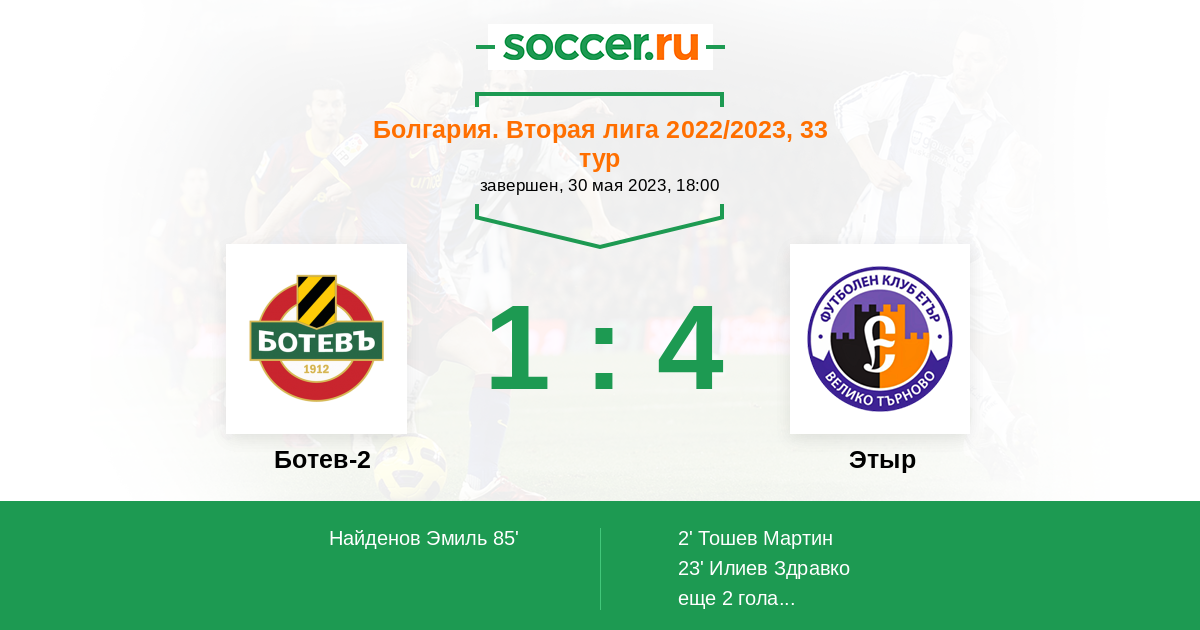 Протокол матча Ботев-2 против Этыр