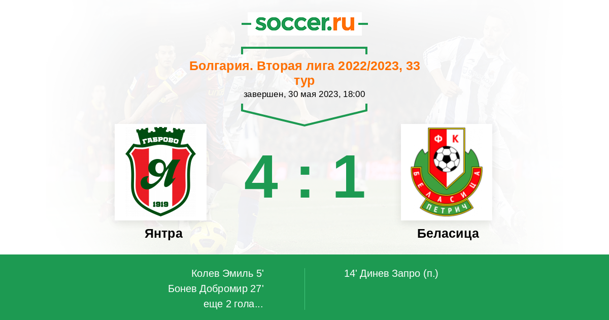 Протокол матча Янтра против Беласица