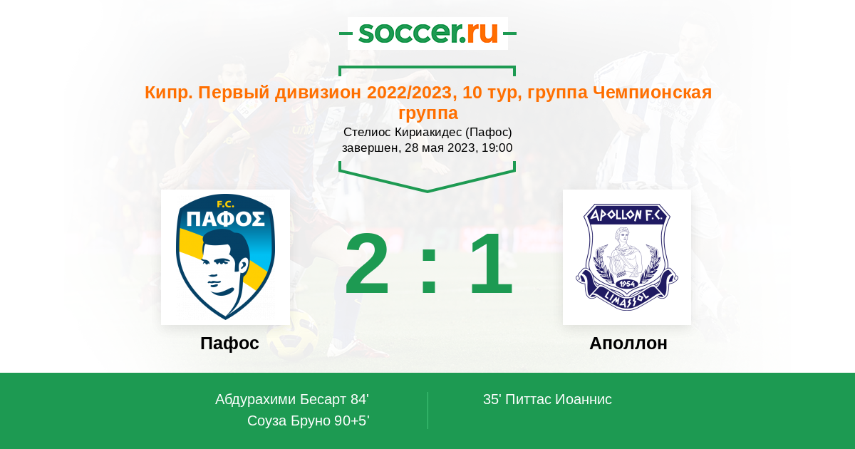 Протокол матча Пафос против Аполлон