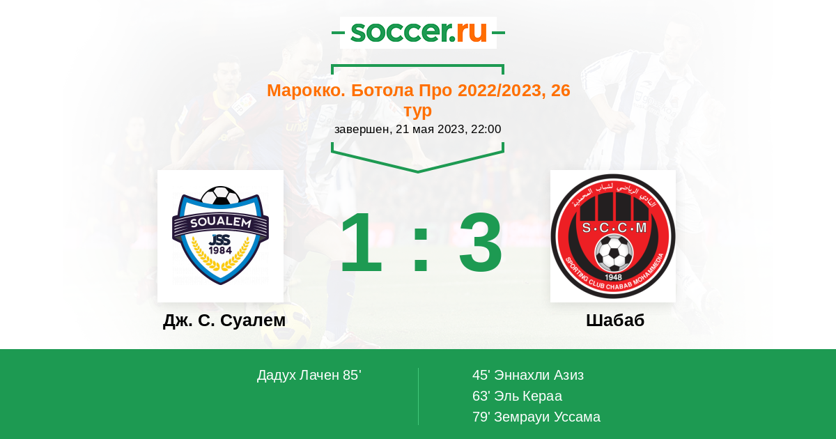 Протокол матча Дж. С. Суалем против Шабаб