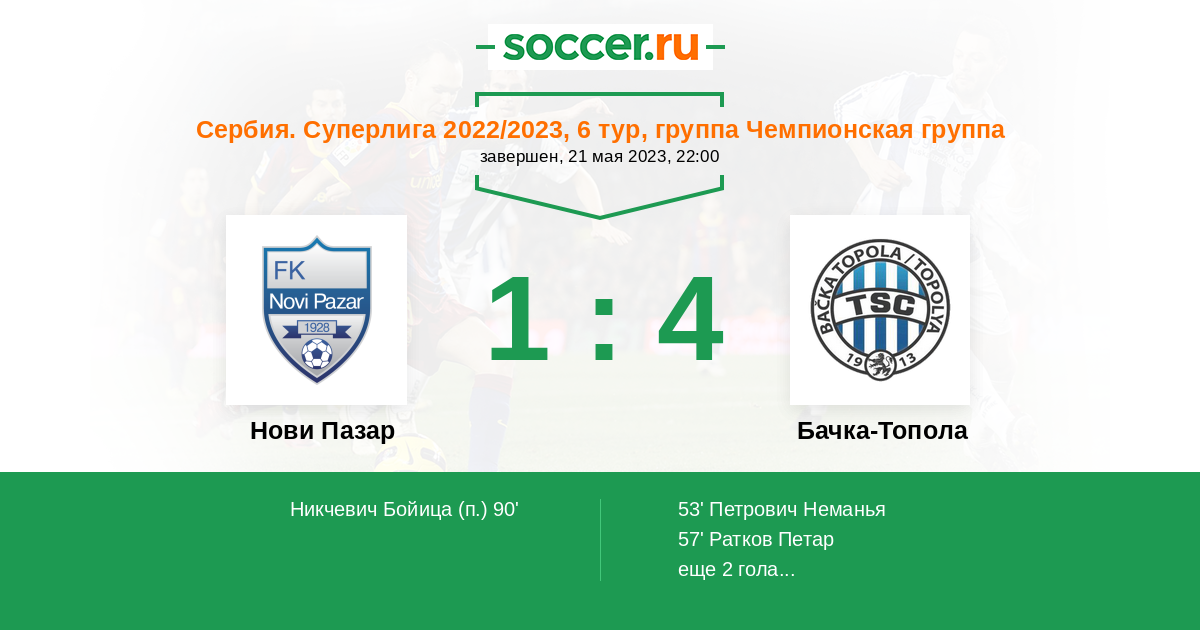 Протокол матча Нови Пазар против Бачка-Топола