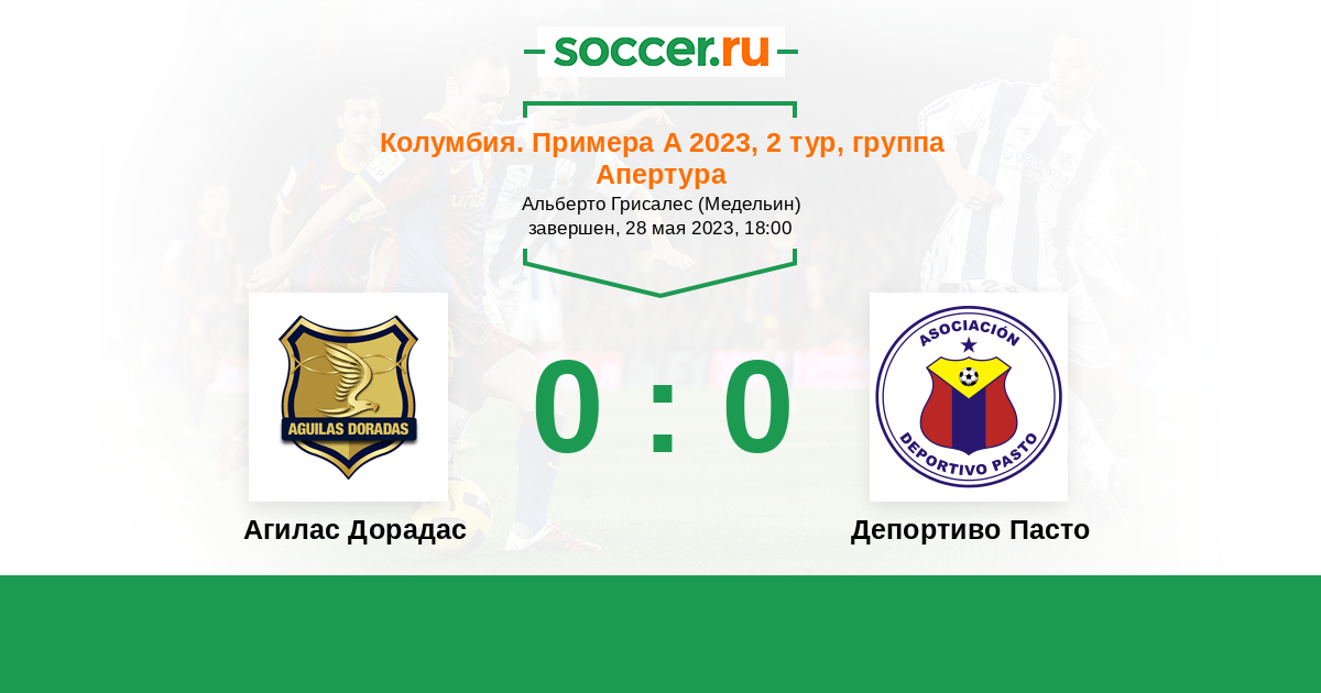 Протокол матча Агилас Дорадас против Депортиво Пасто