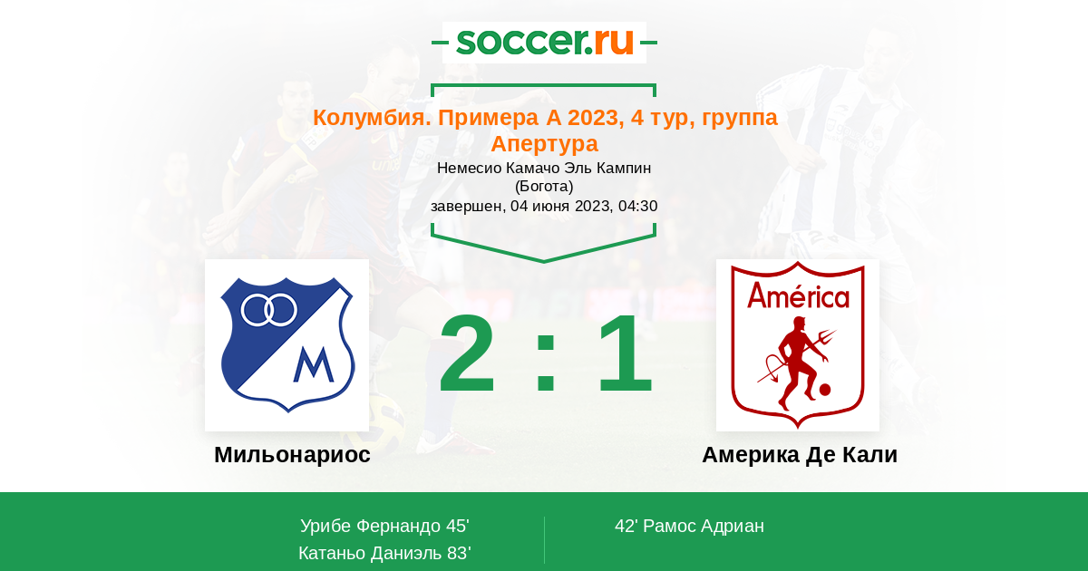 Протокол матча Мильонариос против Америка Де Кали