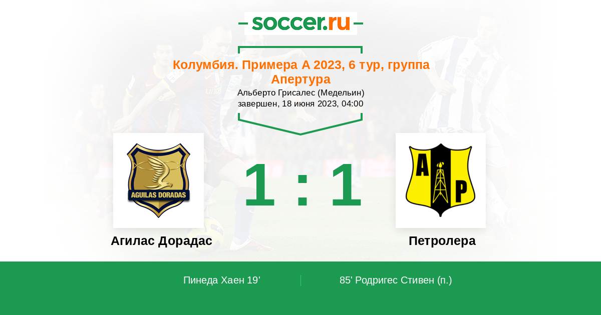 19' (1:0) Пинеда Хаен (16) (Перес Марко (18))