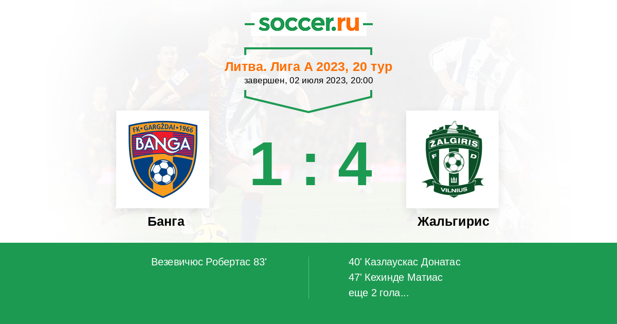 Протокол матча Банга против Жальгирис