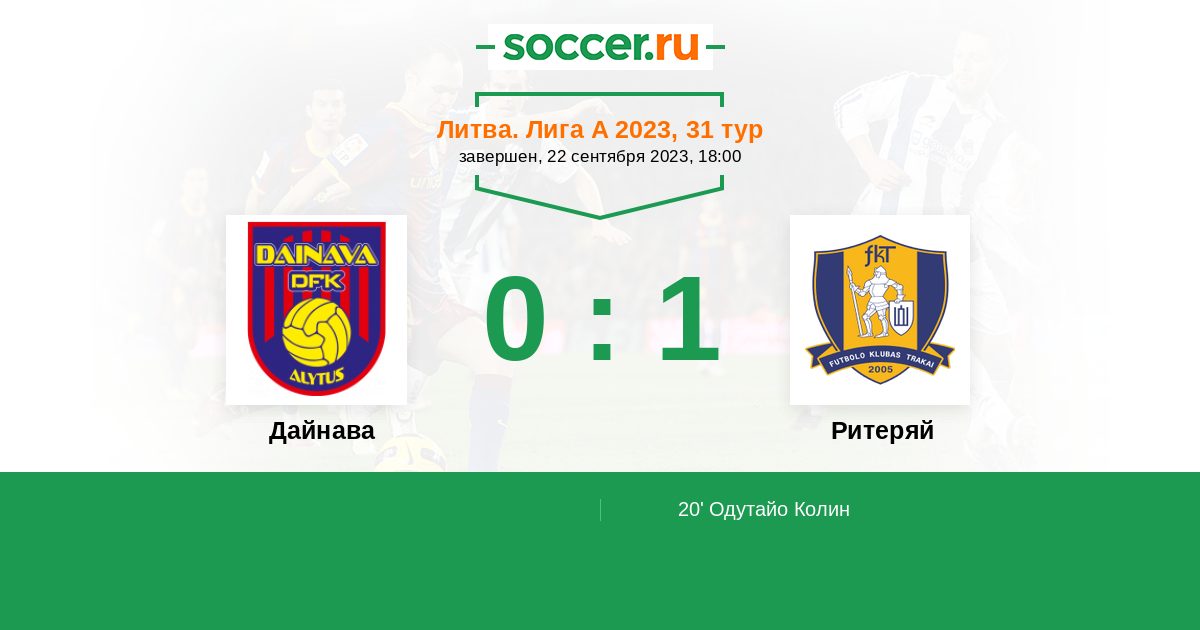 Протокол матча Дайнава против Ритеряй