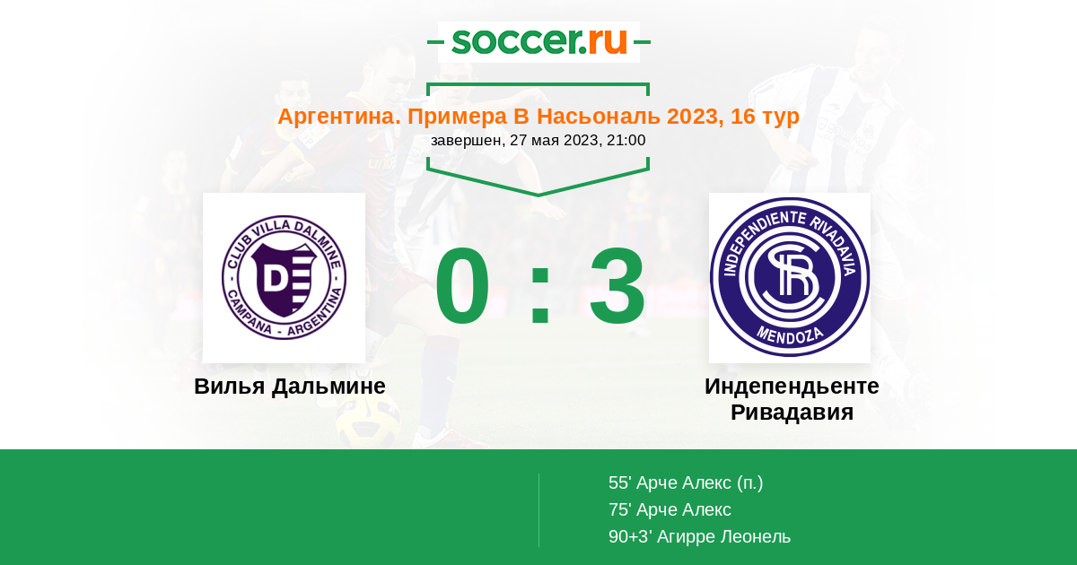 Протокол матча Вилья Дальмине против Индепендьенте Ривадавия