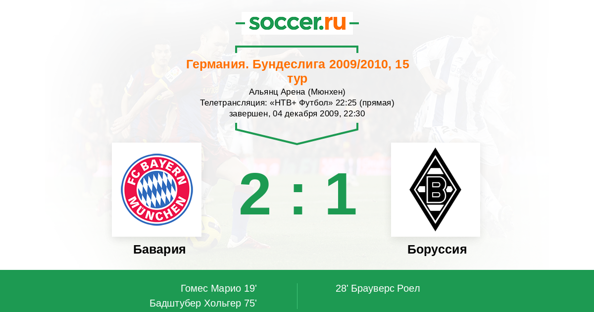 Протокол матча Бавария против Боруссия