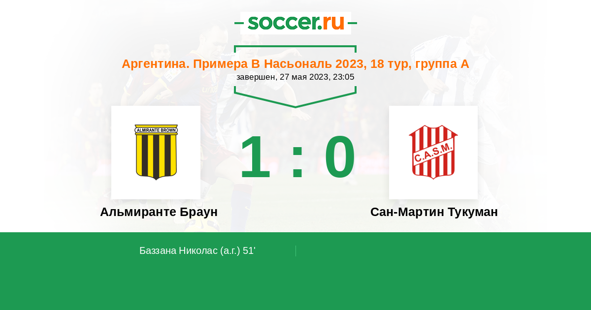 Протокол матча Альмиранте Браун против Сан-Мартин Тукуман