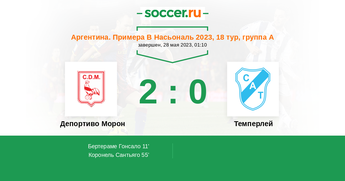 Протокол матча Депортиво Морон против Темперлей