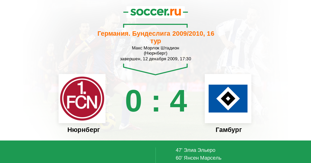 Протокол матча Нюрнберг против Гамбург
