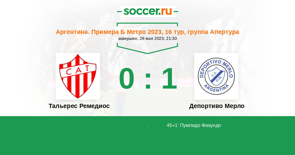 Протокол матча Тальерес Ремедиос против Депортиво Мерло
