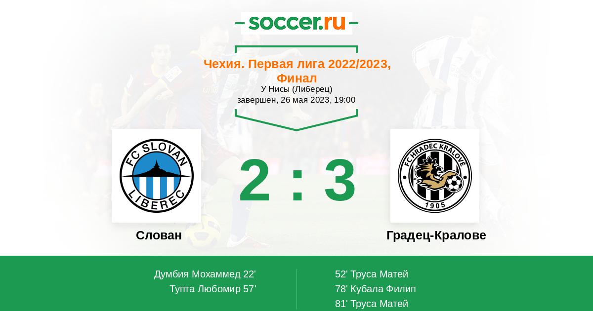 Протокол матча Слован против Градец-Кралове