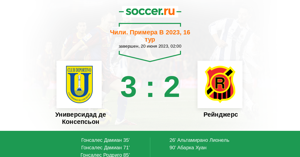 Протокол матча Универсидад де Консепсьон против Рейнджерс