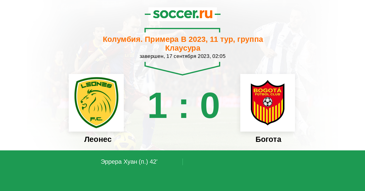 Протокол матча Леонес против Богота