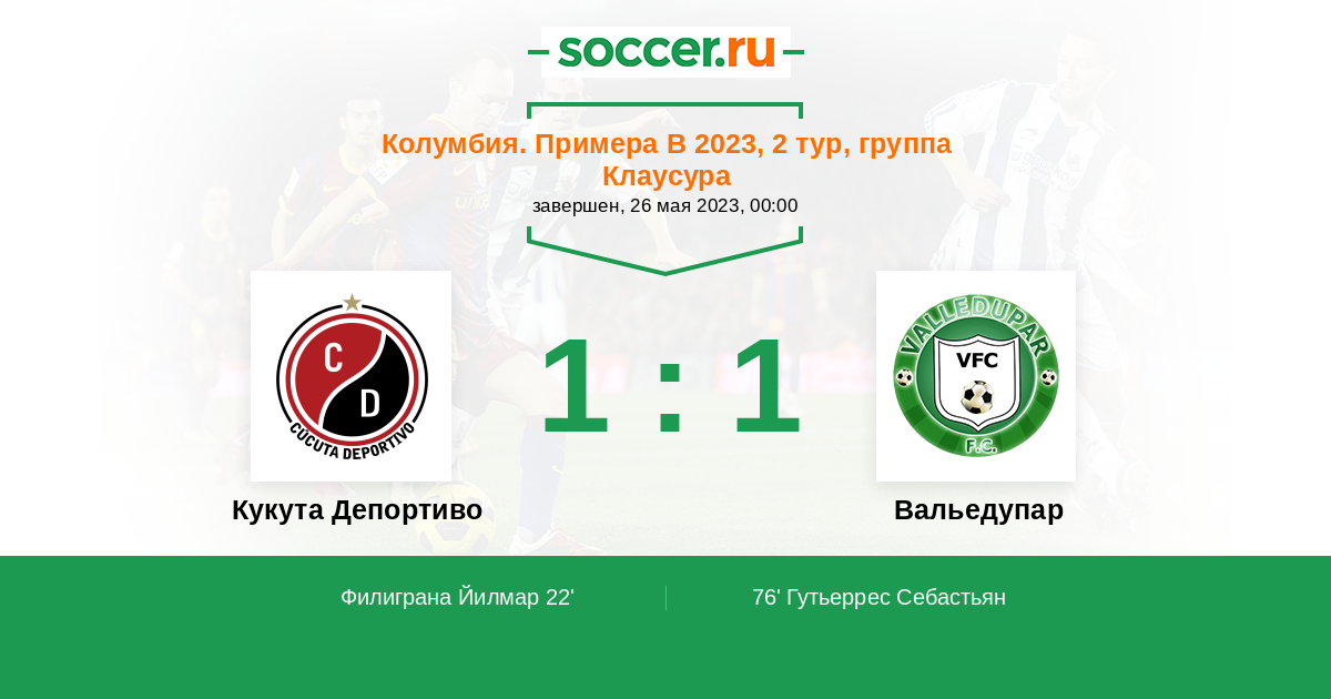Протокол матча Кукута Депортиво против Вальедупар