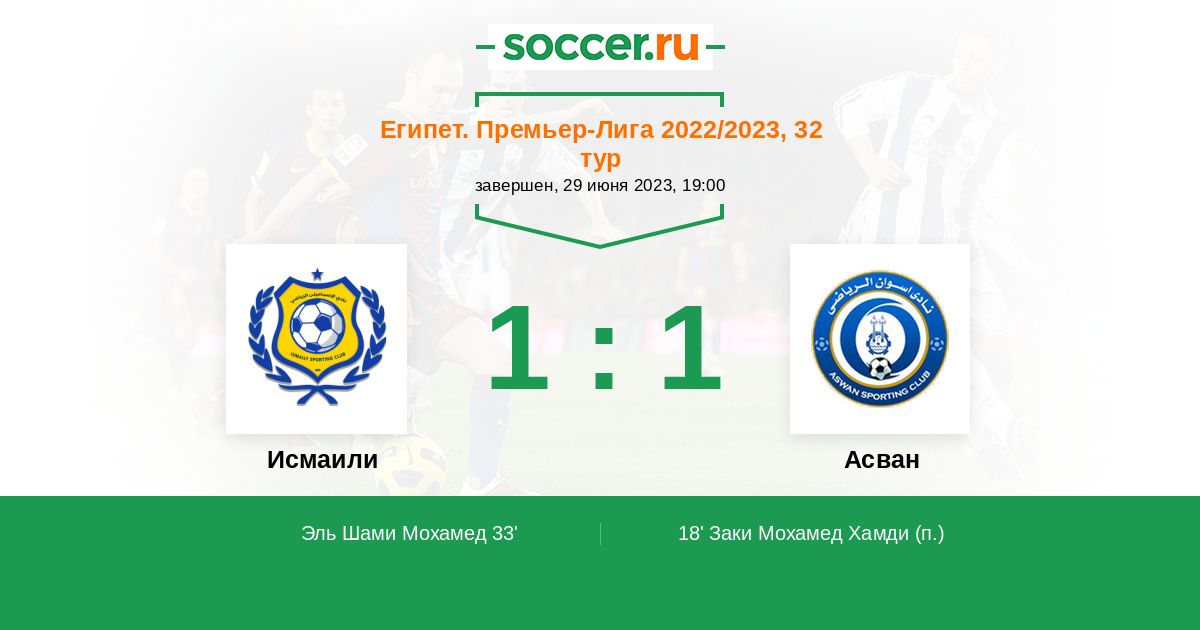 33' (1:1) Эль Шами Мохамед (11) (Аннор Яв (30))