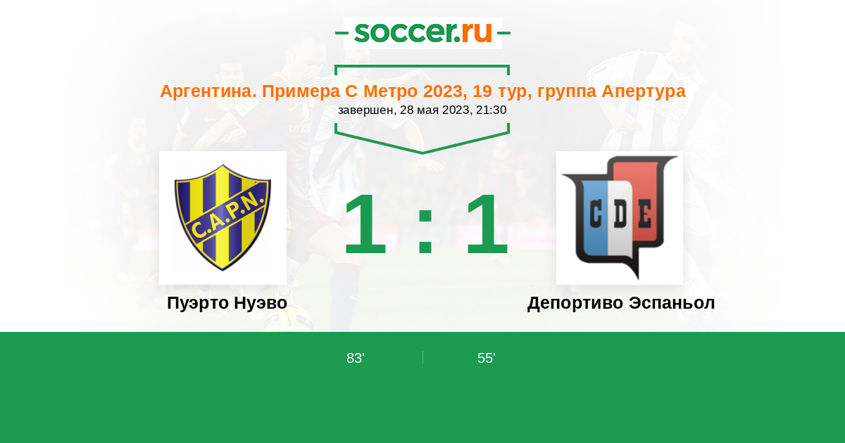 Протокол матча Пуэрто Нуэво против Депортиво Эспаньол