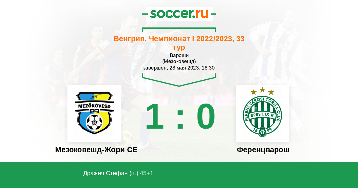 Протокол матча Мезоковешд-Жори СЕ против Ференцварош