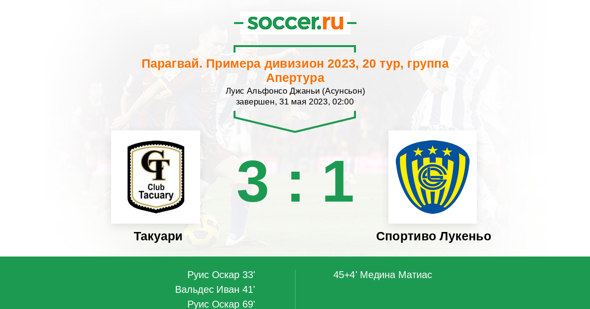 69' (3:1) Руис Оскар (11) (Родригес Дерлис (17))