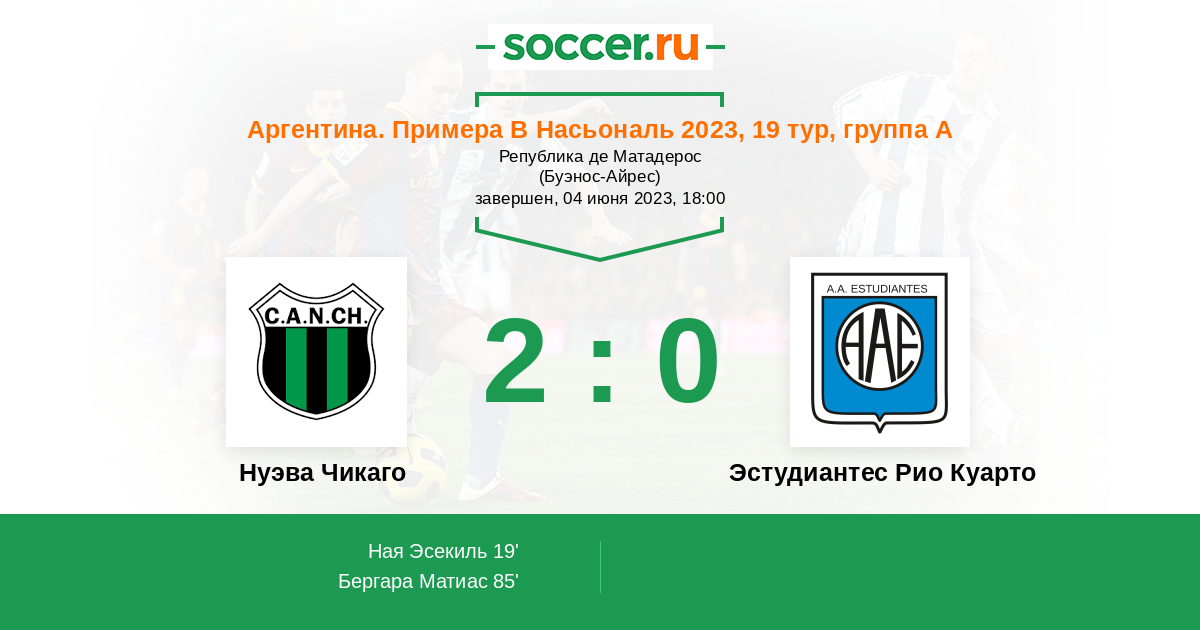 Протокол матча Нуэва Чикаго против Эстудиантес Рио Куарто
