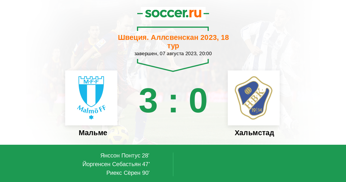 Протокол матча Мальме против Хальмстад
