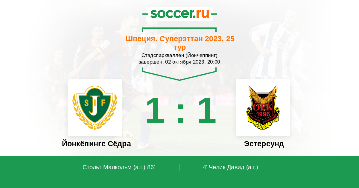 Протокол матча Йонкёпингс Сёдра против Эстерсунд