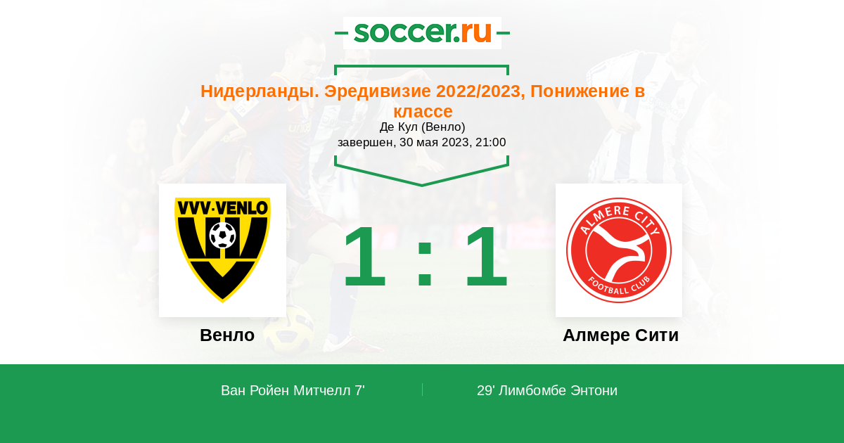 Протокол матча Венло против Алмере Сити