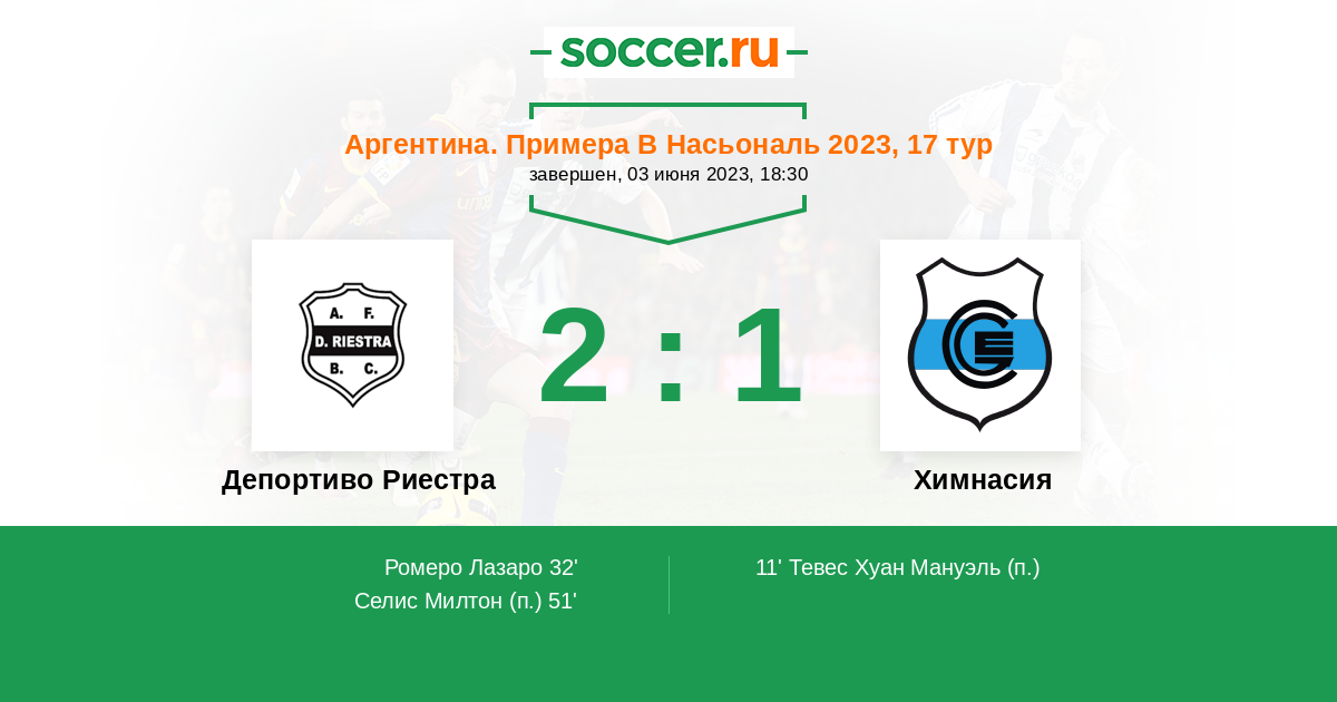Протокол матча Депортиво Риестра против Химнасия