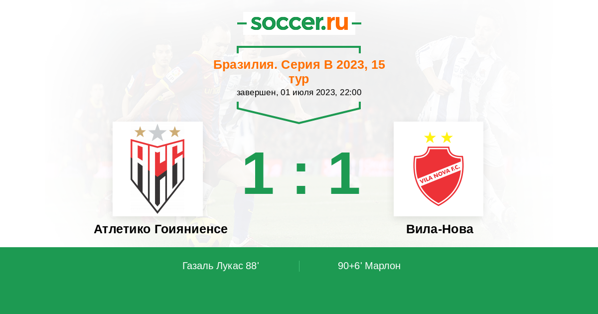 90+6’ 1:1 Марлон