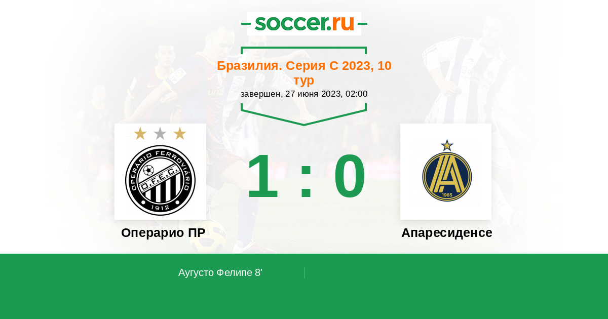 Протокол матча Операрио ПР против Апаресиденсе