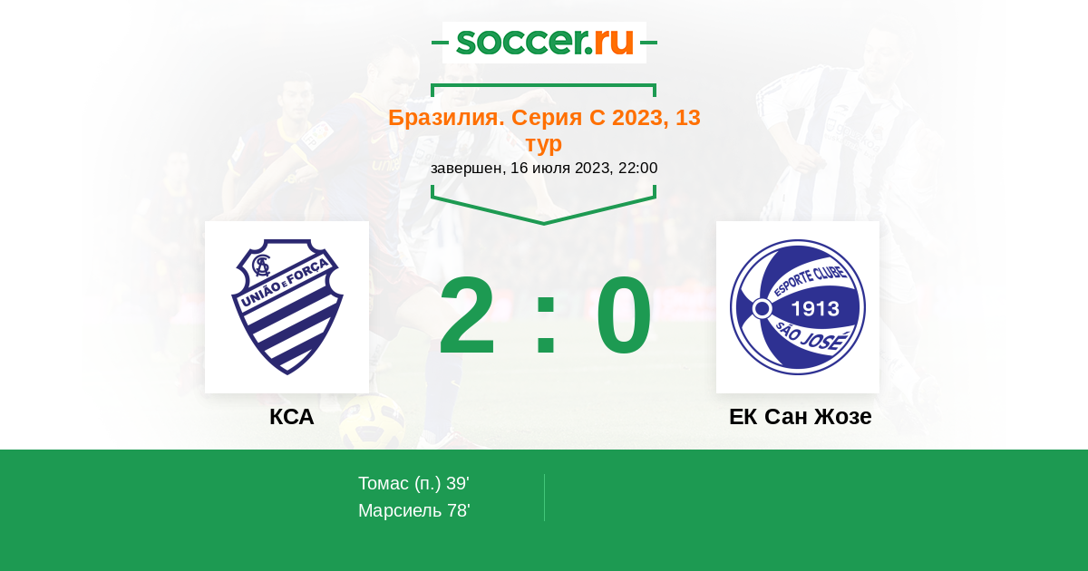 Протокол матча КСА против ЕК Сан Жозе