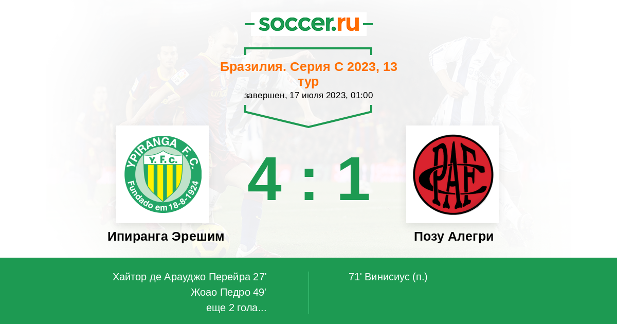 Протокол матча Ипиранга Эрешим против Позу Алегри