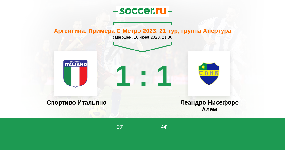 Протокол матча Спортиво Итальяно против Леандро Нисефоро Алем