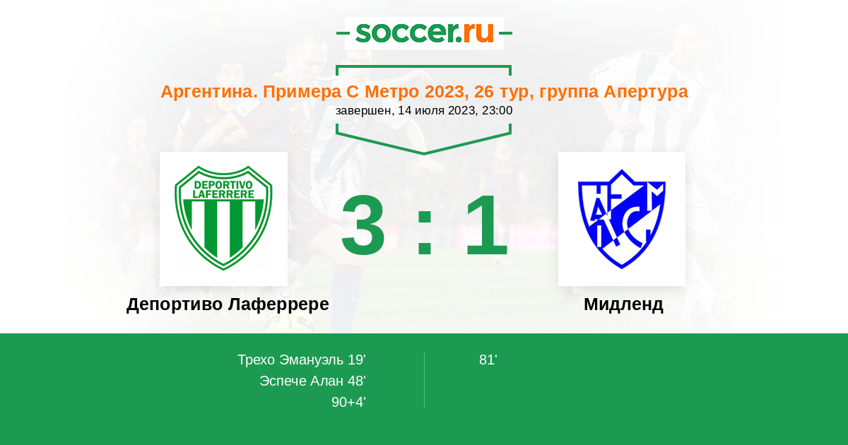Протокол матча Депортиво Лаферрере против Мидленд