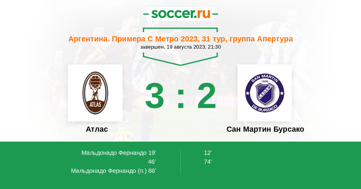 Протокол матча Атлас против Сан Мартин Бурсако