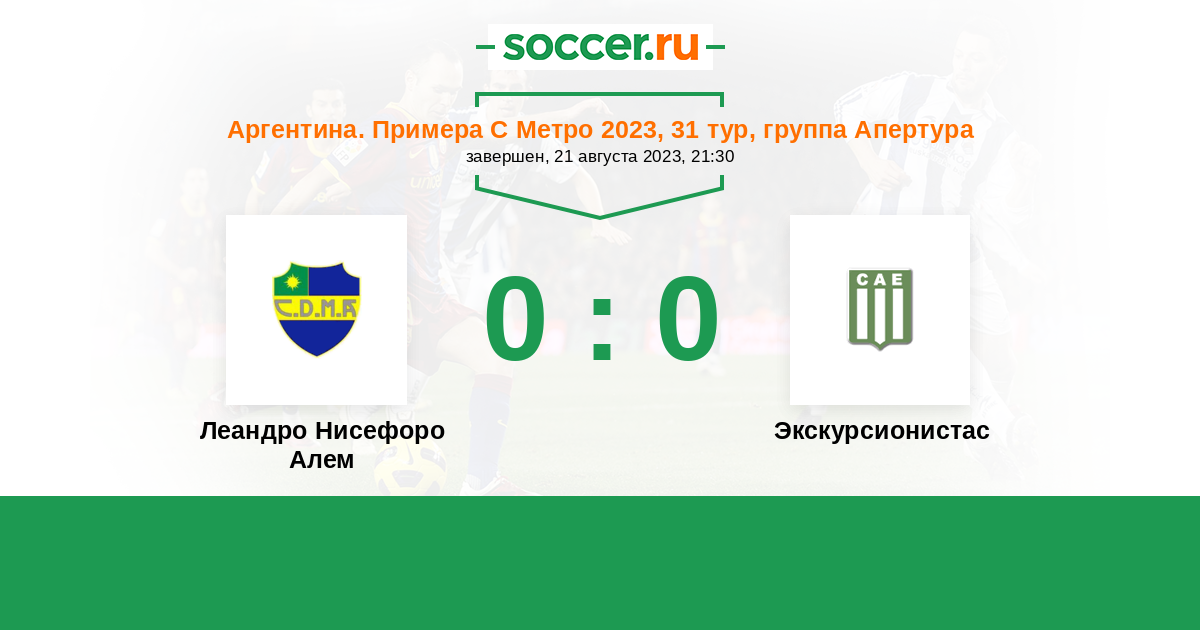 История матча Леандро Нисефоро Алем против Экскурсионистас