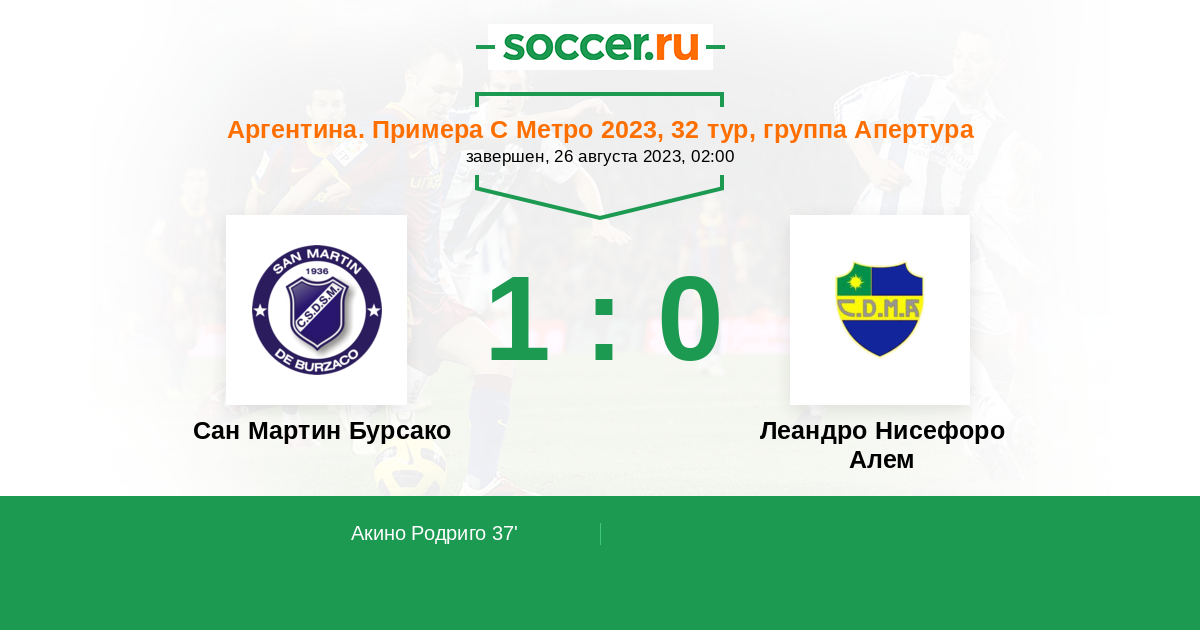Протокол матча Сан Мартин Бурсако против Леандро Нисефоро Алем