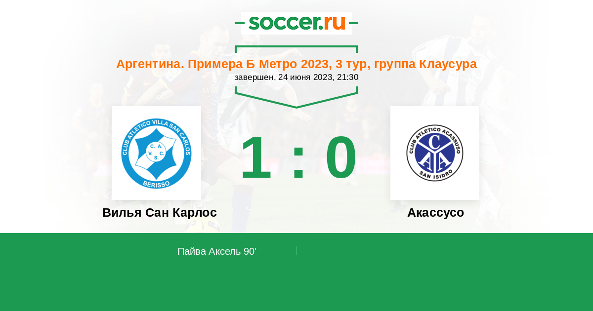 Протокол матча Вилья Сан Карлос против Акассусо