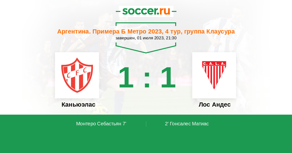 Протокол матча Каньюэлас против Лос Андес