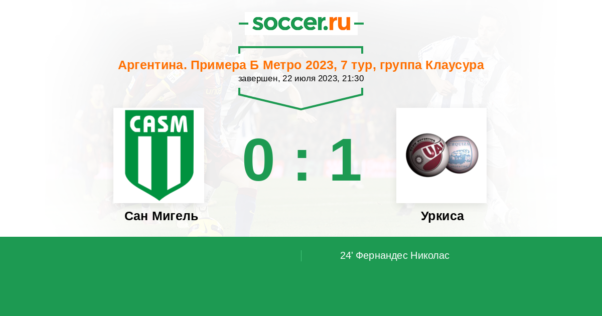 Протокол матча Сан Мигель против Уркиса