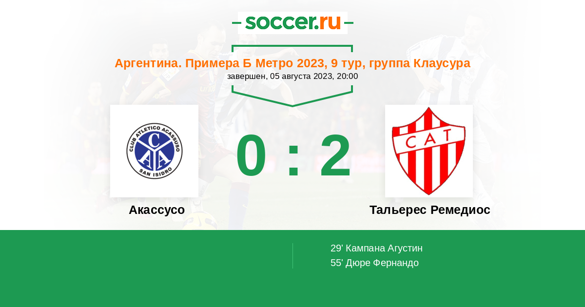 Протокол матча Акассусо против Тальерес Ремедиос