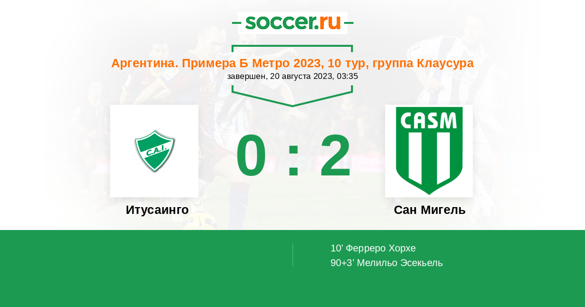 Протокол матча Итусаинго против Сан Мигель