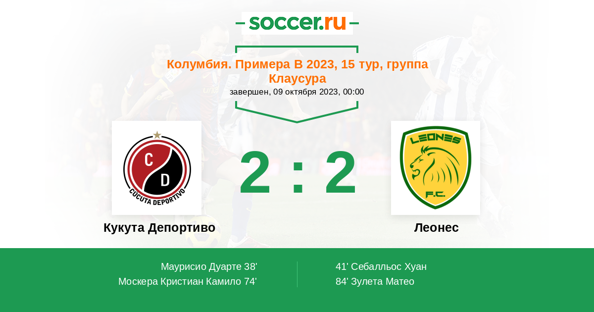 Протокол матча Кукута Депортиво против Леонес