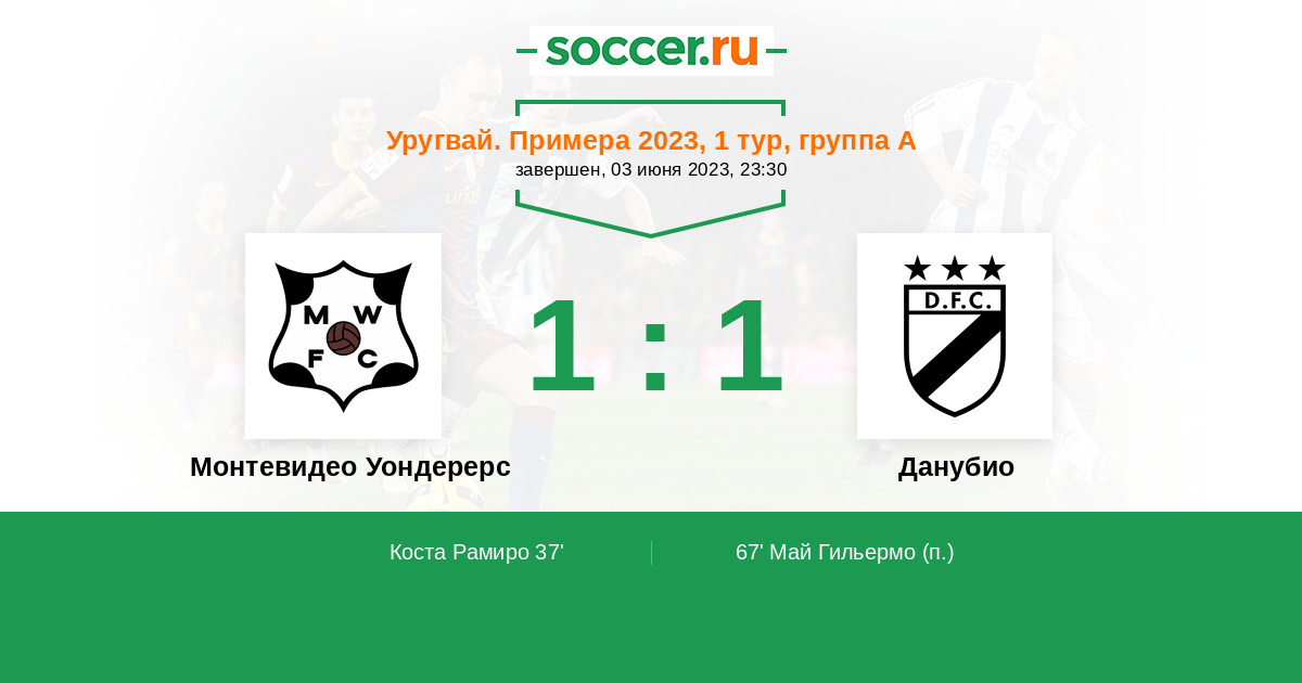 Протокол матча Монтевидео Уондерерс против Данубио