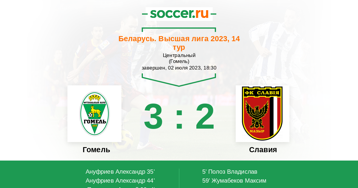 Протокол матча Гомель против Славия