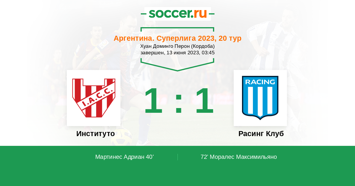 Протокол матча Институто против Расинг Клуб