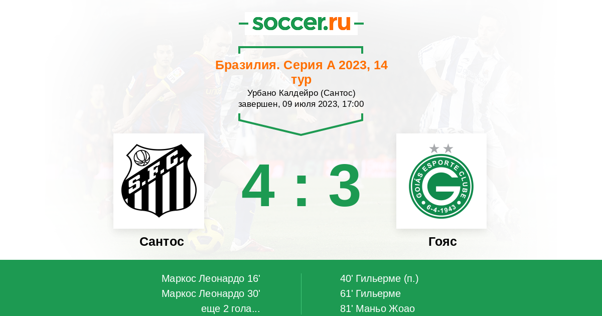 16' (1:0) Маркос Леонардо (9) (Лукас Лима (23))